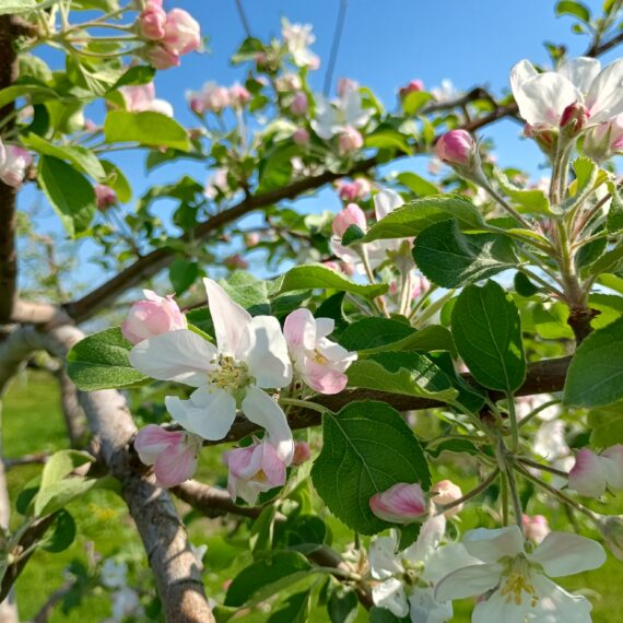 特に1本だけ存在する樹齢100年のりんごの木は、今も現役で実を成らせ、弊社のシンボルツリーとして大切に守っています。